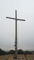 foto, cuando va ya andando de espaldas, leo en la mochila: ABUELO……PEREGRINO.