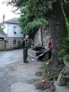 Casiano de Barbadelo ya no está con nosotros. Se ha ido con tanta nobleza y prudencia como creo que fué su vida. Lo conocí el mes de Junio del año 2002, llegaba transido después de mas de ventitrés kilómetros andados, con un calor insoportable, al punto de la "pájara", cuando entre tantos árboles y maizales apareció un oasis de paz, un lugar mágico, un paraje deslumbrante y dentro de todo este sitio, sus habitantes, sus moradores, sus gentes tan mágicas como el lugar, tan sorprendentes como los parajes que empezaba a pisar y alli estaba él, al girar la esquina de la aldea vi a un hombre enjuto, sonriente, afable, allí estaba Casiano para decirme que la fuente estaba para refrescarme, para beber, para que me aliviara. Aquella misma tarde después de comer, junto a la fuente me contó historias de su mili en Africa, me habló de anécdotas de su tierra, de Sarria, de Barbadelo, de como bajaban a las "feiras" cada equis tiempo a comprar, a vender, a intercambiar. Ese fué mi primer contacto con él, gracias que no fué el último, durante años he seguido escuchándolo, al lado de una lumbre con su voz baja y su sosiego no paraba de contarte y de decirte, siempre tenia palabras de ánimo, eso si, pausado, sin prisas, en voz baja como si todo ya estuviera hecho.