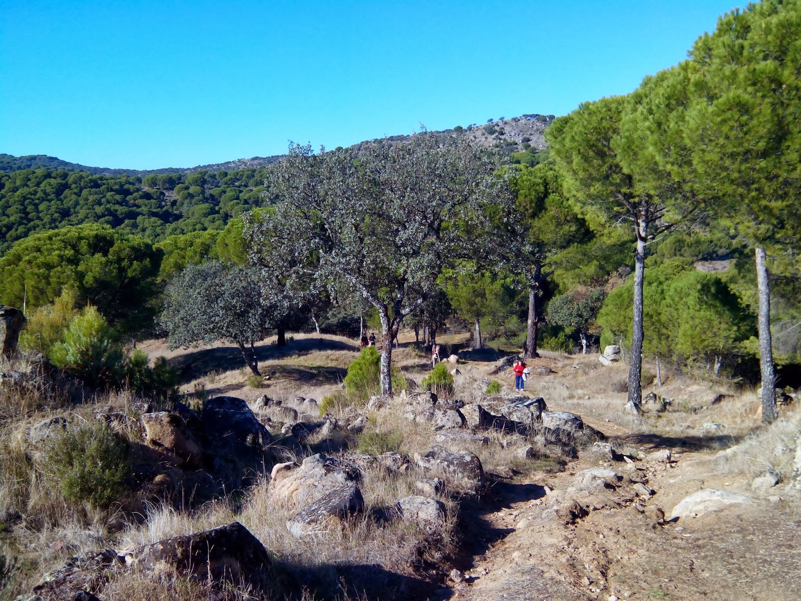 Continuo mi camino y el bosque mediterraneo campa por todos los lados, encinas, quejigos, alcornoques, madroños, cornicabras, majuelos,....................., continuo mi recorrido y en un giro la arboleda cambia total, ahora es el pino el árbol predominante y a paso quedo para no interrumpir el silencio del bosque, en el tesón de que mis ojos puedan contemplar algún ciervo o algún gamo y alli al fondo en la umbria del pinar una manada de ciervos, observándome en la distancia, desconfiados y prestos a la huida a cualquier movimiento mio, tras unos instantes absorto, dejo de amorrarme al camino y continuo no dejando de pensar en esta racion de belleza que me llevo en la memoria.