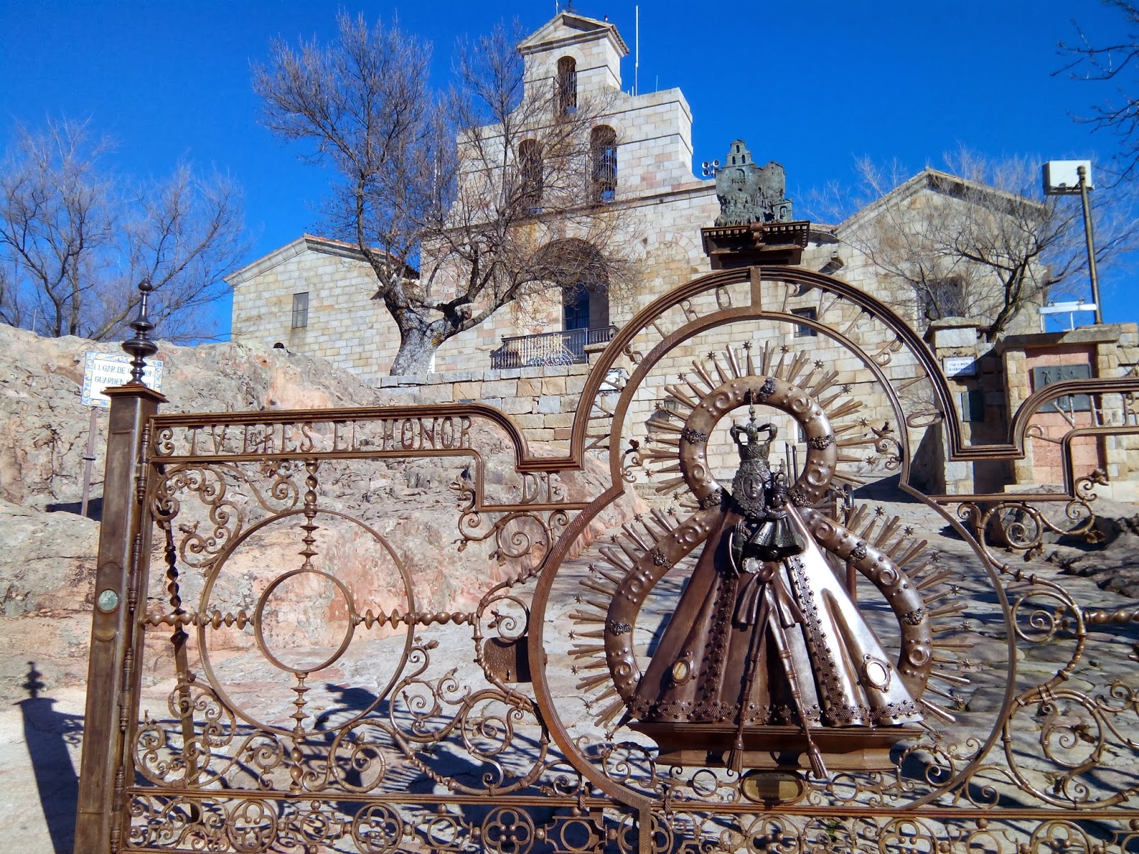 Ya me queda poco para llegar al fin del sendero, en poco mas de una hora llegaré a postrarme a los pies de la Señora y mi pensamiento ahora no se aparta de ella, aunque no dejo de tocar el romero y olerme los dedos o de pasar las manos por las ramillas de lavanda y tocarme la nariz y observo tambien la jara pringosa diciendome que en otra època estarà maravillosa con sus flores blancas. El silencio me ronda y me gira, me paro y bebo para refrescar mis adentros, ya no paro de pensar en Ella, a poco un puente de madera para cruzar un arroyo, desde aqui casi tres kilometros para llegar, los tres cuesta arriba, con un pinar impresionante donde los haya y ahora si, ya casi al final hay que apretar el trasero y sacar el último suspiro de los pulmones. A mitad de los metros que me quedan aparece a mi derecha el camino que viene de Andújar, la terminación de los famosos Caracolillos y ya el Arco y la Calzada, últimos metros en los que dejo de ser duende del camino y total peregrino, conforme asciendo tengo pequeños "retemblíos", con mis labios moviéndose en total silencio solicito a la Madre de Dios ventura y bienestar para todos los que me rodean y finalmente aqui estoy a sus pies,el esfuerzo ha merecido la pena, GRACIAS MADRE MIA.,
