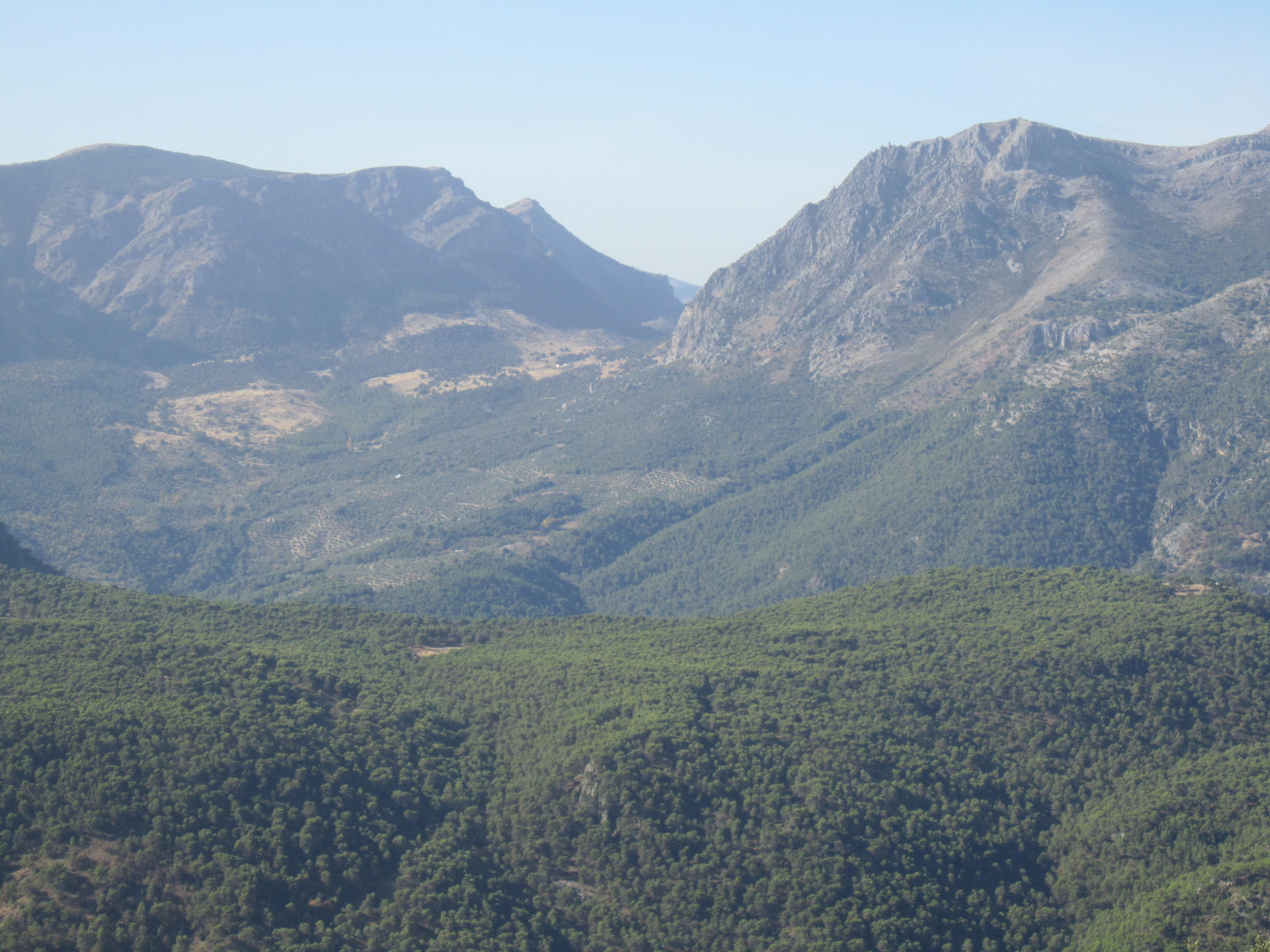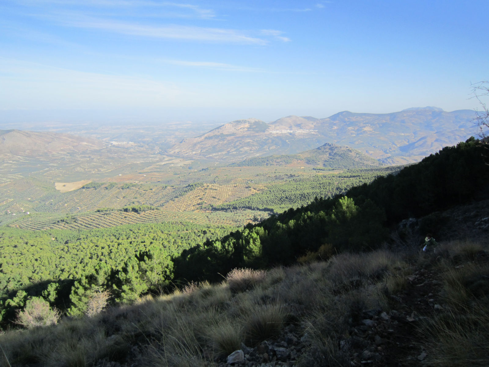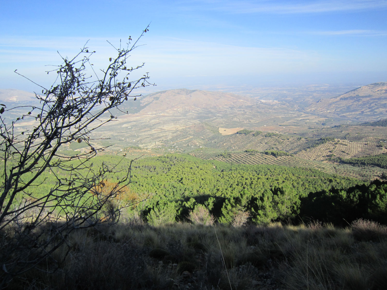 Son varias y todas agradables las vistas que obtienes, nada mas dejar el Puerto del Tejo desaparece la arboleda, quizás en la lejania algún que otro pino laricio y en la aparente llanura vegetación rastrera que oculta grandes piedras. Es aqui en esta zona donde giras la cabeza y vas teniendo visión de lo que a pocos minutos vas a ir observando a tu derecha, poco a poco vamos abandonando las vistas hacia el Valle del Guadalquivir para tener en la retina ese otro inmenso bosque de olivos en la lejania.