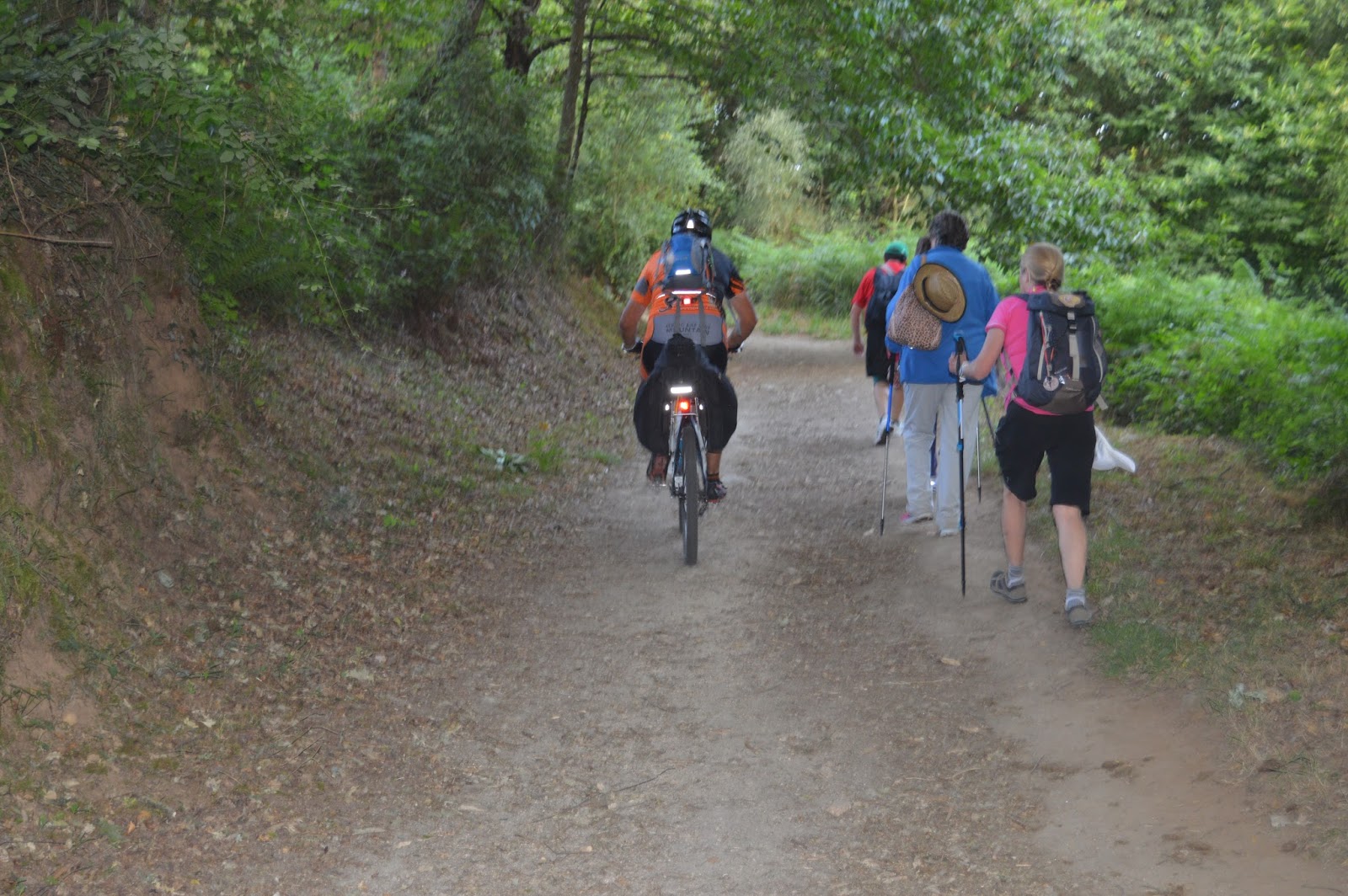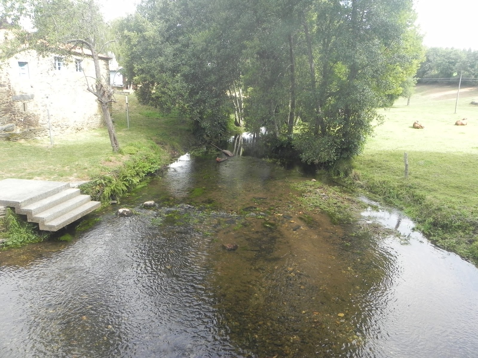 La mañana está nublada, la temperatura ideal para retomar el camino, amenaza poca lluvia que luego no llegará, incluso en el horizonte parece que hay algo de niebla, busco el rio y el puente para ascender por un paraje casi indómito, de esos que si te descuidas te roba el alma, la cuesta se empina hasta que acabas en una carretera, desde aqui el camino es otro, no es el de ayer, no por ello existe desesperanza, puede ser momento de animada cháchara, de recibir y de dar, de profundizar en una posible amistad con otros peregrinos, asi mirando al frente y hablando te das cuenta que con un buen amigo, con una nueva amistad no hay camino largo.