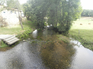 Subes y bajas por este tramo de ruta, un auténtico tobogán, salvando rios y arroyos, buscando alturas y otra vez vuelta a bajar, asi hasta encontrar el paraiso de Ribadiso, lugar distinto, sitio donde llegas costándote mucho esfuerzo en la bajada, pero necesario para descalzarte y meter los pies en el agua transparente, quedándote allí absorto, pensativo, casi sin habla, en un espacio excepcional de tranquilidad y pureza.