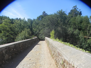 La Via Verde se haria monótona si no tuvieras en que pensar, pero conforme andas y observas el paisaje se te hace bastante llevadera y mas cuando debes atravesar esos grandes puentes de hierro realizados por alumnos del Sr. Eiffiel, o cuando no muy lejos ves una torre de un castillo cercano vigilante del antiguo camino que por estas tierras pasaba y te quedas sorprendida como no tras cruzar el puente mas largo cuando ves abajo, junto al rio, un magnifico puente, pequeñito pero bellisimo que te anuncia el paso del camino por estos territorios, fotos muchas fotos y como no ganas de bajar a verlo, pisarlo y sentir el latido de la historia.
