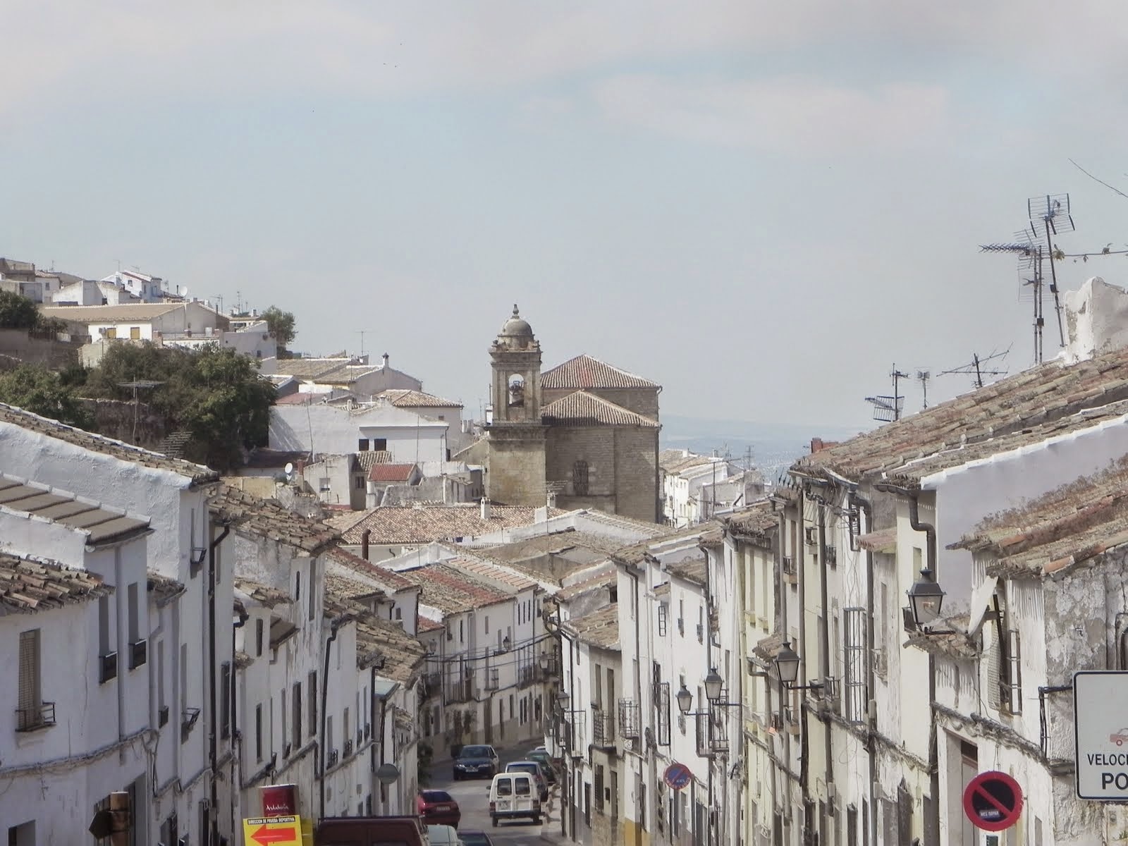 Entramos a Martos, ¡que casualidad!, por la Puerta de Jaén, la Peña a nuestra siniestra ahora y encajonada, alli al fondo la Iglesia de San Amador, Patrón de la ciudad, mártir Mozárabe y primer Santo de la Diócesis de Tucci y de Jaén. Antes de entrar a ver el Patrón y sellar, en la ermita de Santa Lucia, un buen refrescón y tras presentarle mis respetos a San Amador empiezo a subir una pendiente que me dejará en la Plaza del Ayuntamiento. Continuo el camino, ahora cuesta abajo, y justo detrás del Consistorio me encuentro con el Albergue de Peregrinos en el Convento de las Madres Trinitarias.