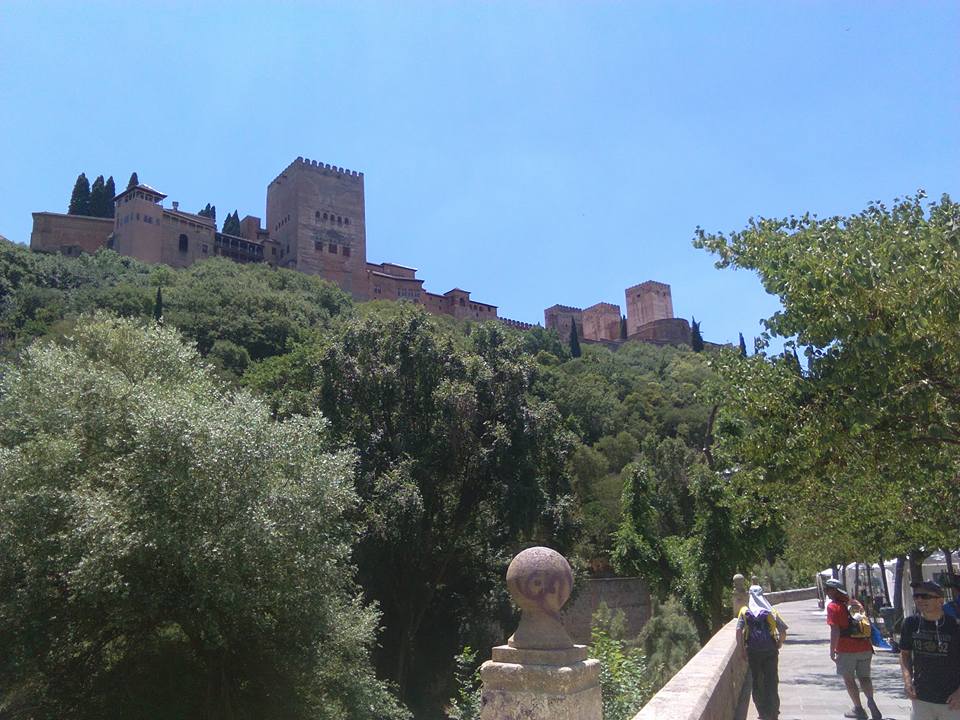 Entramos a un grupo de viviendas y veo un letrero "Camino de Beas", asi se llama la calle, calle ya de Granada, empezamos el Sacromonte, al fondo como jungando al escondite la Abadia, inmensa, en un lugar privilegiado y poco a poco al otro lado, la silueta del Generalife, algo mas allá Santa Maria de la Alhambra y poco mas adelante la Alhambra propiamente dicha. Con un pie delante de otro y con un ritmo que me lleva lento, observo y quedo satisfecho, estoy en Granada, Granada Mágica y Fascinante, dejo el Sacromonte y en el paseo de los Tristes, a las faldas de la Alhambra vuelvo a recordar al Fraile de Oseira, he vivido, he sentido y ha aparecido la Magia del Camino y llegué a un lugar Mágico sin saber de tiempo real, ni de minutos, ni de horas, habiendo encontrado de nuevo amistad, aventura, sueño y la "magia del Camino".
