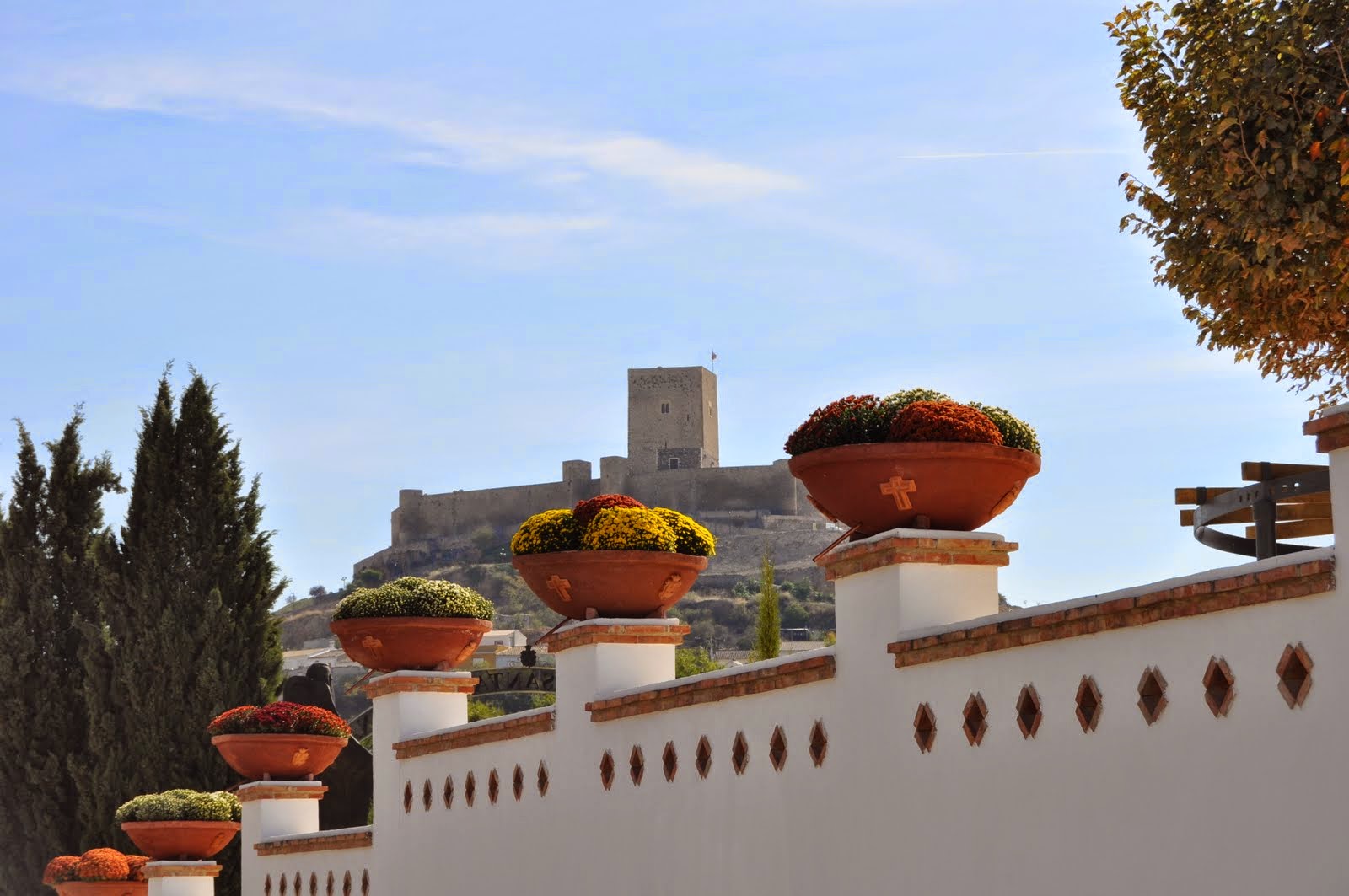 Acabada la cuesta, otra imagen para guardar en la retina, alli arriba, impertérrito al paso del tiempo, emergente de la montaña, el Castillo Calatravo de Alcaudete, hermoso y vigilante de los caminos de siempre, yo vengo desde el camino de Jaén, por alli aparecerá el otro que traerá a gente de Granada y mas a mi derecha los provinientes de Córdoba. Llego al final de mi andadura de hoy con las ganas de patearme la localidad por la tarde y saber de ella, el camino en dos dias ya me está dejando huellas.