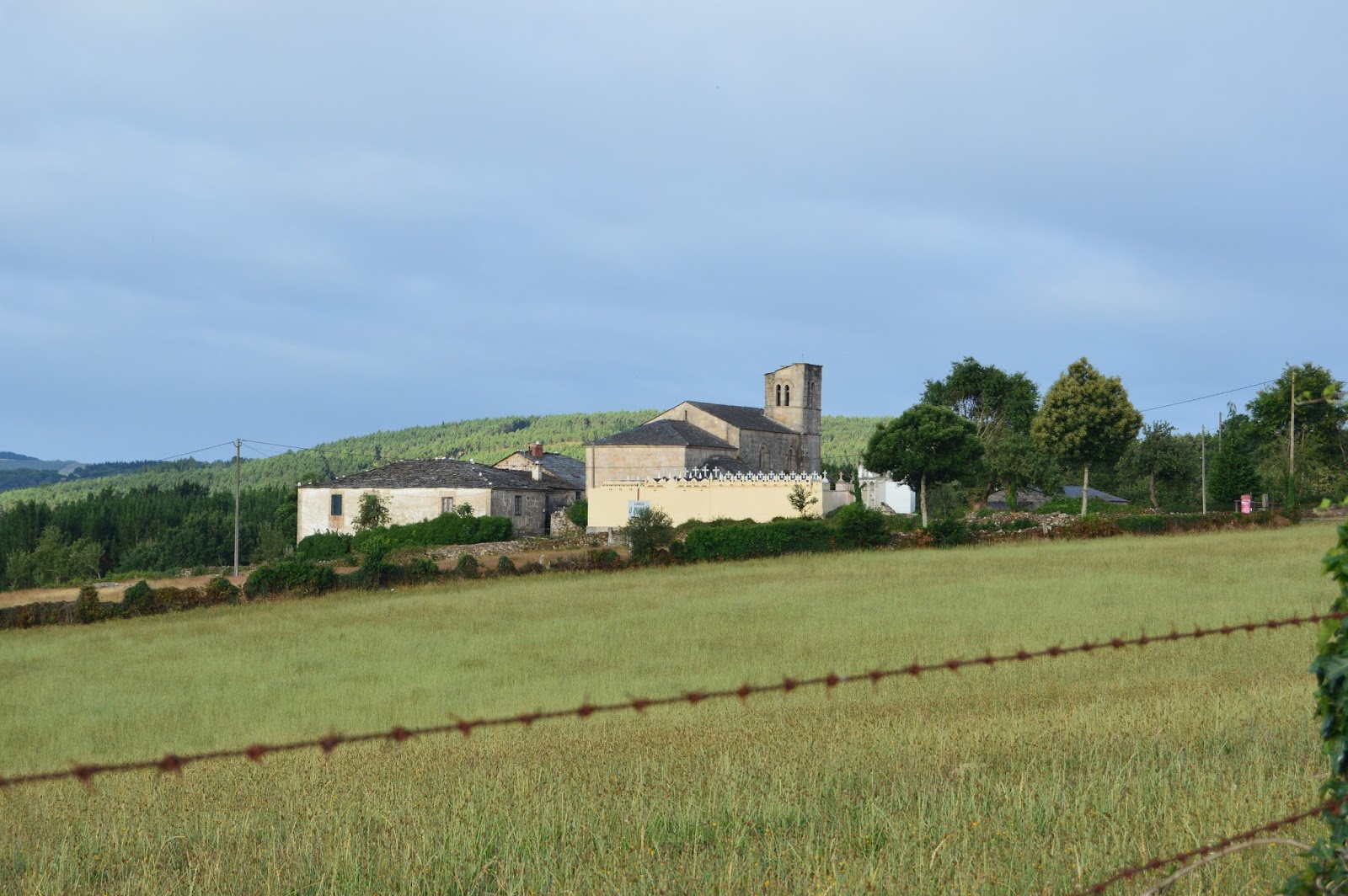 martes, 7 de julio de 2015 Mañana fresca, muy agradable para empezar a caminar, con los primeros paso abandono Melide, no sin antes escuchar un run-run que proviene de la iglesia ubicada a la salida de la localidad, en ese momento con gente en el exterior se está ofreciendo una misa. Algo mas adelante en San Martiño me paro en otra iglesia. Siempre la vi cerrada, hoy abierta, me hablaron en su dia de ella y me acerco. Hay un chaval, un voluntario, de esos que aman el camino, se conoce el ultimo rincón de la iglesia, disfruta hablando de ella, esta iglesia es única, si es cierto que es un lujo estar ahi y contemplarla, merece la pena, es uno de esos lugares que nunca te imaginas lo que tiene dentro, algún dia, como tema pendiente, habrá que volver y admirar con el tiempo que me pueda dedicar este voluntario, porque para esto como peregrino debo tener tiempo, no solo es andar por andar.