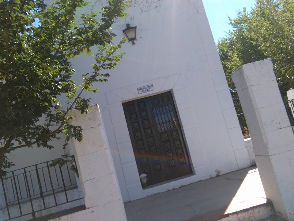 La aventura continua casi a mil metros de altitud, buen y ancho camino con numerosas matas de tomillo, de romero, que nada mas rozarlas te aromatizan tus pasos, poco a poco el sendero te introduce en un camino agradable, con sombras, en zigzagueo ves numerosas encinas, alguna que otra caseria, una ermita humilde me hace parar y dejar la mochila unos minutos en el suelo, ¡una ermita!, me digo, aqui en mitad del camino, pequeña, sencilla y recatada, dedicado al Cristo del Almeciz.