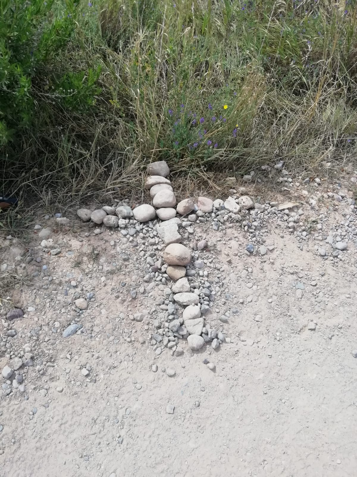 piedras en el suelo y la hemos encontrado sin mayor problema.Hemos parado, hemos rezado y en silencio hemos pensado en él, NUNCA CAMINARAS SOLO, y en el recuerdo la Asociación de Jaén nunca olvidará a Paco, en este lugar colocaremos un Hito de granito en recuerdo de él y de sus caminos, para que quede constancia de su paso por aquí.